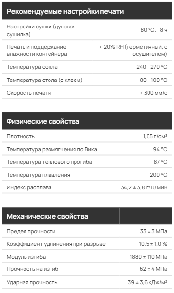 • Во время печати могут выделяться резкие и неприятные запахи. Убедитесь, что принтер находится в хорошо проветриваемом помещении. • Условия сушки: 80℃ в течение 8 часов. Хранить в сухом месте после использования. Высушить перед использованием, если материал впитывает влагу. Для получения более подробной информации см.:Инструкции по сушке нити на WIKI. • ABS склонен к деформации при печати модели большого размера и/или с высокой плотностью заполнения. Чтобы избежать деформации: 1) Не рекомендуется печатать модель слишком большого размера и/или с высокой плотностью заполнения. 2) Используйте корпусные принтеры и убедитесь, что рабочая пластина правильно приклеена перед печатью. 3) Установите более низкую скорость печати и более высокую температуру нагревательного стола. Для получения более подробной информации см.: Распространенные проблемы с качеством печати и их решения на WIKI.